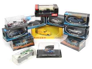 comprend notamment les modèles : CITROEN, PEUGEOT, TUK TUK, BMW, JAGUAR & AUDI - on y retrouve notamment les marques : CORGI, SOLIDO, VEREM & SCHUCO - une boite en état 'c' & une autre en état 'd'