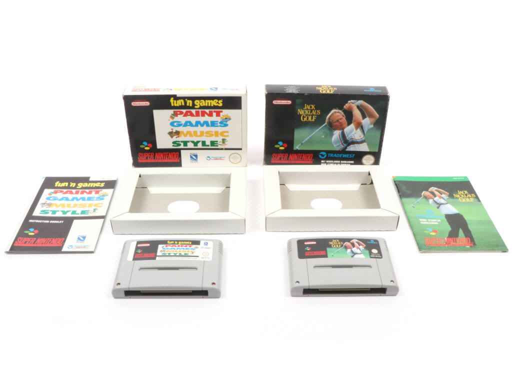 testé (fonctionne) - comprend : FUN'N GAMES & JACK NICKLAUS GOLF - petits accrocs sur les boites & manques de papier