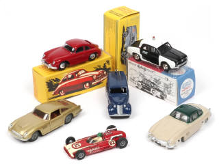 miniatures reproduisant les modèles : PORSCHE, RENAULT & MERCEDES - on y retrouve les marques : QUIRALU (productions récentes dont une distribuée en kiosque & une autre sans boîte) & CIJ/NOREV - on y joint une ASTON MARTIN DB5 de la marque VEREM (état 'R', sans boîte) & une HARVEY de la marque SOLIDO (état 'A', sans boîte)