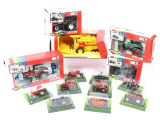 différentes échelles - comprend les,marques : BRITAINS & HACHETTE - on y retrouve essentiellement des tracteurs & une moissonneuse batteuse - boîtes plus ou moins déformées en états 'b à c'