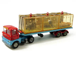 CORGI TOYS (GB) 1139 SCAMMELL HANDYMAN avec remorque-ménagerie rouge & bleu ciel