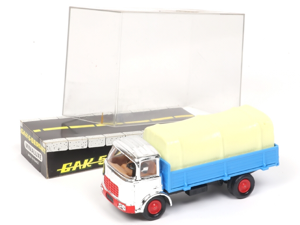 MINIALUXE (FRANCE) BERLIET GAK Plateau à ridelles bâché chromé, bleu & jaune