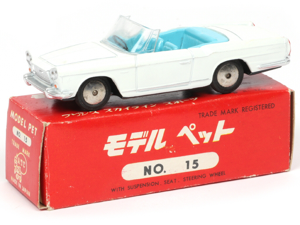 ASAHI-ATC MODEL PET (JAPON) 15 PRINCE SKYLINE SPORTS Cabriolet blanc, intérieur bleu ciel