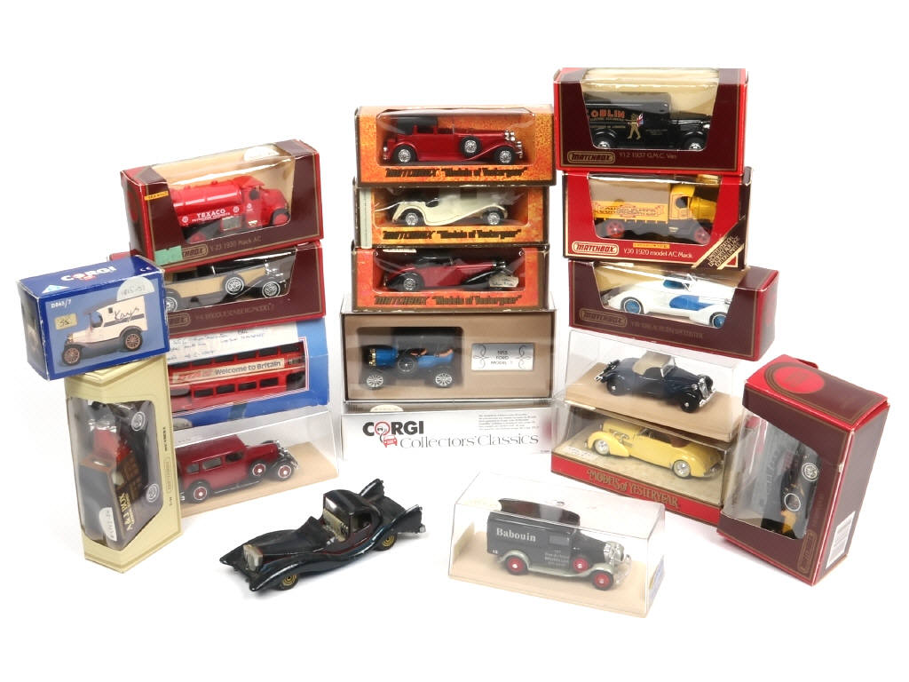 un modèle en état 'R' - comprend notamment les modèles : SIMPLEX, AUBURN, MACK, HISPANO SUIZA & JAGUAR - on y retrouve notamment les marques : CORGI TOYS, MATCHBOX & ELIGOR - boites en états 'b' & 'c' avec quelques étiquettes