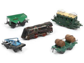 un modèle avec moteur à clef (fonctionne) & un autre électrique (non testé - avec restaurations) - on y retrouve les marques : JEP & HACHETTE - avec manques & parties cassées