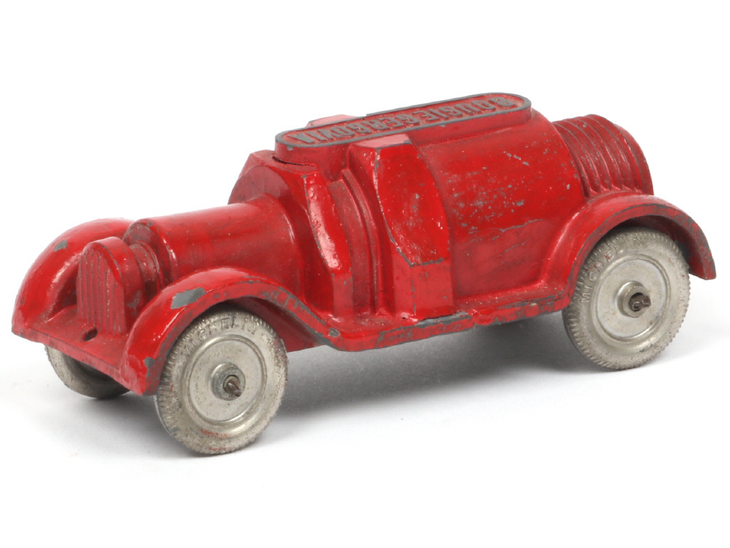 PROMOTIONNEL offert par les bougies GERGOVIA lors du salon de l'auto de 1932 - inscription moulée sur le fond de la coque 'Jouet fondu par FONDERIE DE PRECISION - NANTERRE marque ALUVAC déposée' - certaines parties de carrosserie non peintes - quelques petites restaurations & légères traces de métal fatigue par endroits