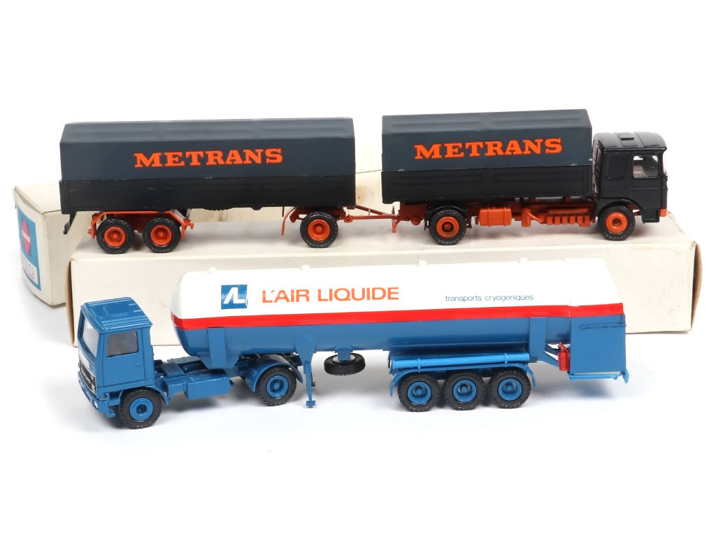 comprend : MERCEDES citerne 'AIR LIQUIDE' (manque sellette d'attelage - boite non conforme avec référence 3024) & MAN bâché 'METRANS'