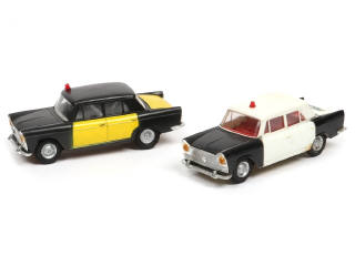 avec moteur à friction (fonctionnent) - légèrement encrassé avec quelques petites traces d'humidité - comprend les versions : TAXI (gyrophare avec petite partie fondues) & POLICIA