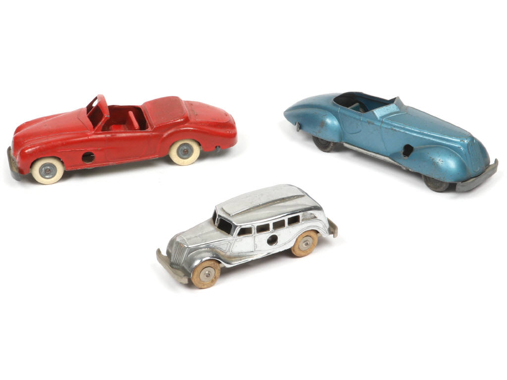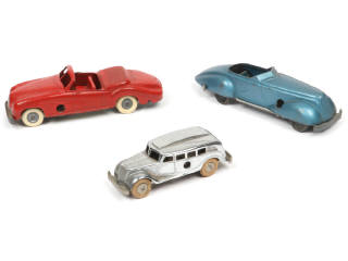 comprend : autocar 1937 (version avec moteur à clef fonctionnel - mécanisme légèrement encrassé - un éclat majeur sur l'arrière du toit), DELAHAYE cabriolet & c abriolet sport 'DAUPHINE' (roues & pneus non d'origine) - avec quelques traces d'oxydation - pneus séchés