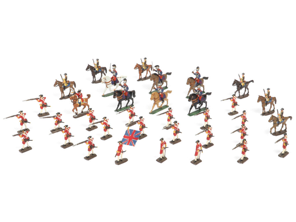 peints à la main - comprend : corps du Général BOLIVAR (1820), Guerre de succession Autrichienne (1740-1748) & 3ème régiment anglais à pieds 'LES BLUFFS' (1742) - quelques petits manques & parties cassées