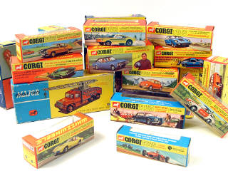états de 'a' à 'c' - comprend les références : 154, 163, 166, 262, 273, 283, 284, 300, 306, 311, 312, 313, 316, 341, 342, 374, 383 (2 exemplaires), 387, 391, 396, 509 & 1121 - on y joint un bulletin d'inscription au 'CLUB CORGI'