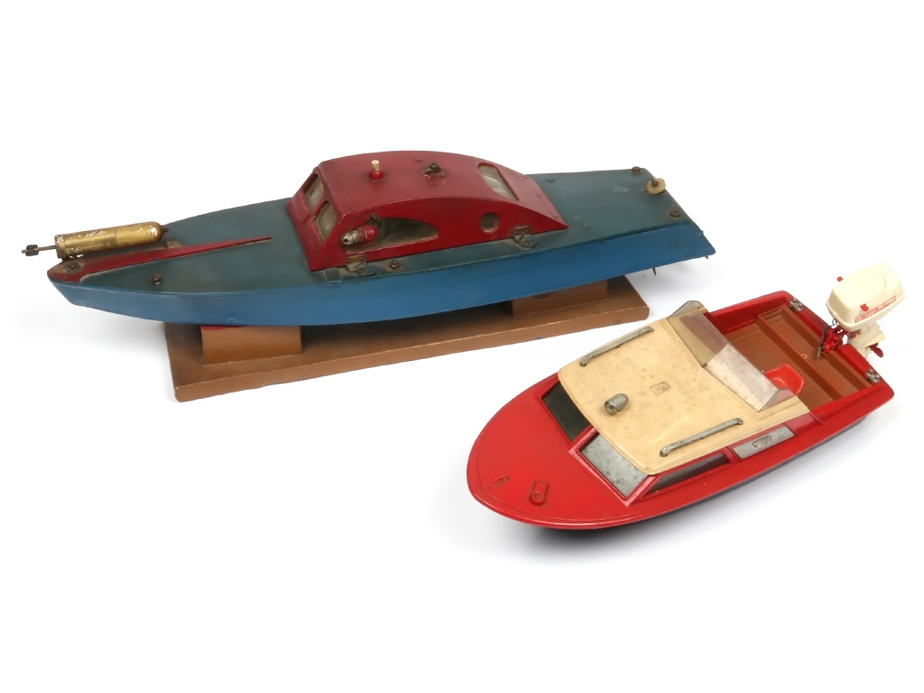 réalisations artisanales en bois & plastique - longueur du plus grand : 64 cm (sur socle en bois) - avec moteurs à piles (à revoir) - avec manques