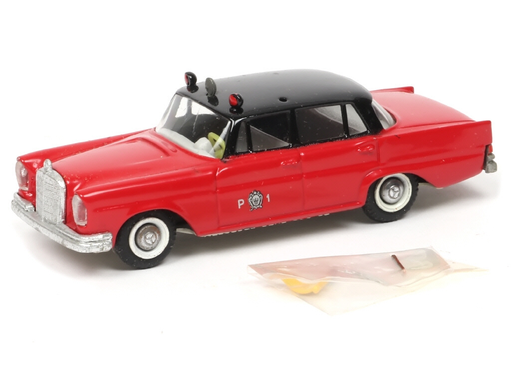 version avec fanion (sous sachet), projecteurs de toit, sirène (ternie ainsi que le pare-chocs arrière), décalques 'P1' sur les portières & la plaque minéralogique arrière