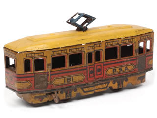 RICO (ESPAGNE) Tramway en tôle lithographiée rouge & jaune