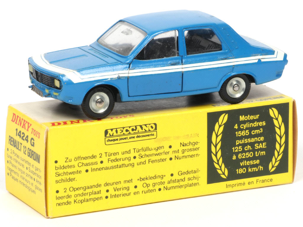 DINKY TOYS (FRANCE) 1424G RENAULT 12 GORDINI (made in SPAIN) bleu, phares jaunes