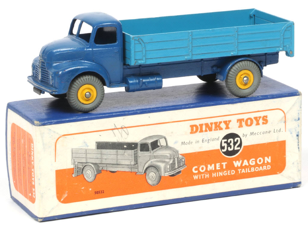DINKY TOYS (GB) 532 LEYLAND COMET Plateau à ridelles 2 tons de bleu, jantes jaunes