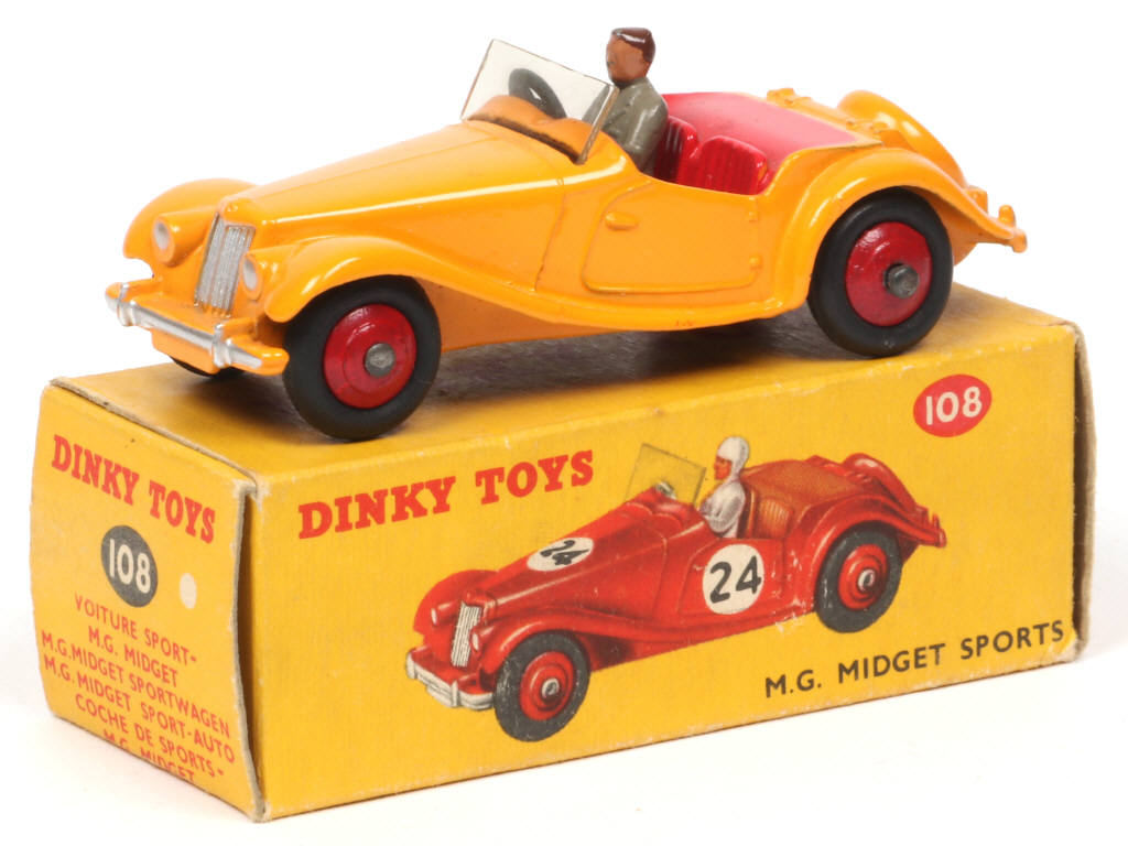 DINKY TOYS (GB) 102 MG MIDGET SPORTS jaune orangé, intérieur & jantes rouges