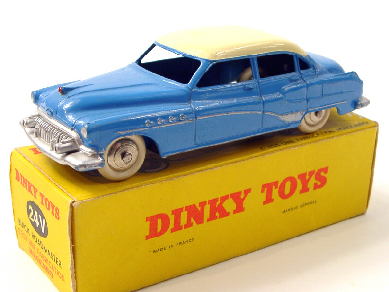 DINKY TOYS (FRANCE) 24V BUICK ROADMASTER (version avec intérieur de toit quadrillé & jantes chromées) bleu, toit crème