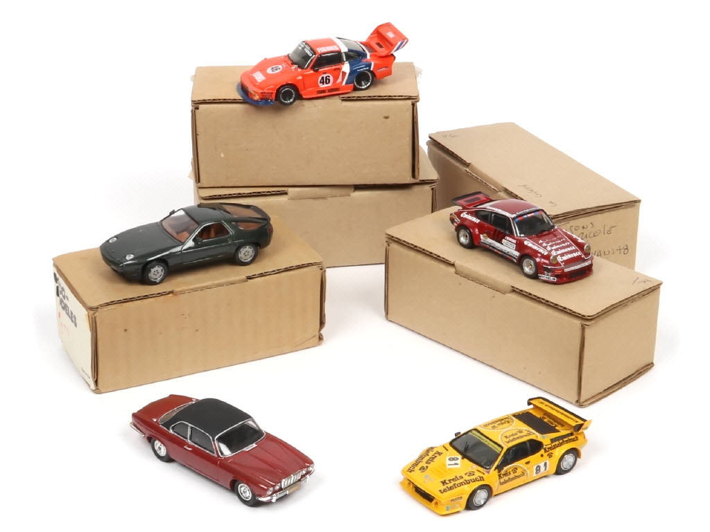 kits montés - comprend les modèles : JAGUAR, BMW (aileron arrière cassé à recoller) & PORSCHE - on y retrouve les marques : RECORD & SOLIDO (sur base)