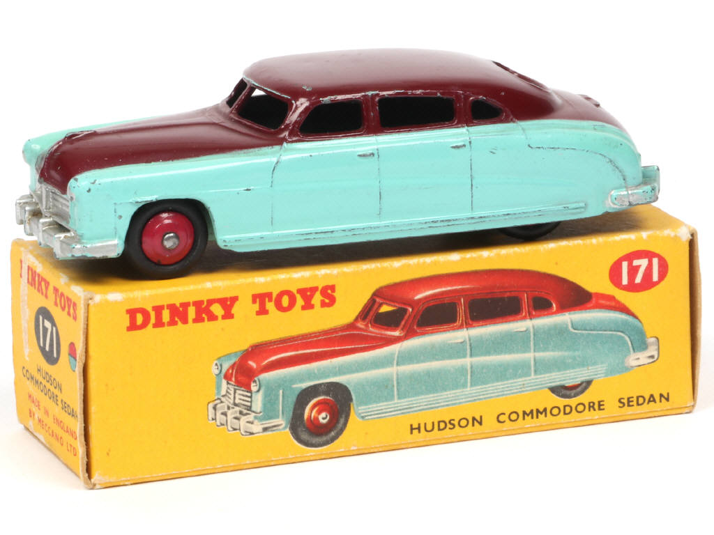 DINKY TOYS (GB) 171 HUDSON COMMODORE Sedan turquoise & chocolat, jantes framboise