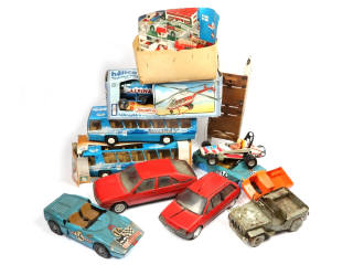 différentes échelles - comprend notamment les marques : JOUSTRA, RADIAMATIC & VULLIERME - on y joint un carton de lego - boîtes en états ''c à d' - petits manques & parties cassées