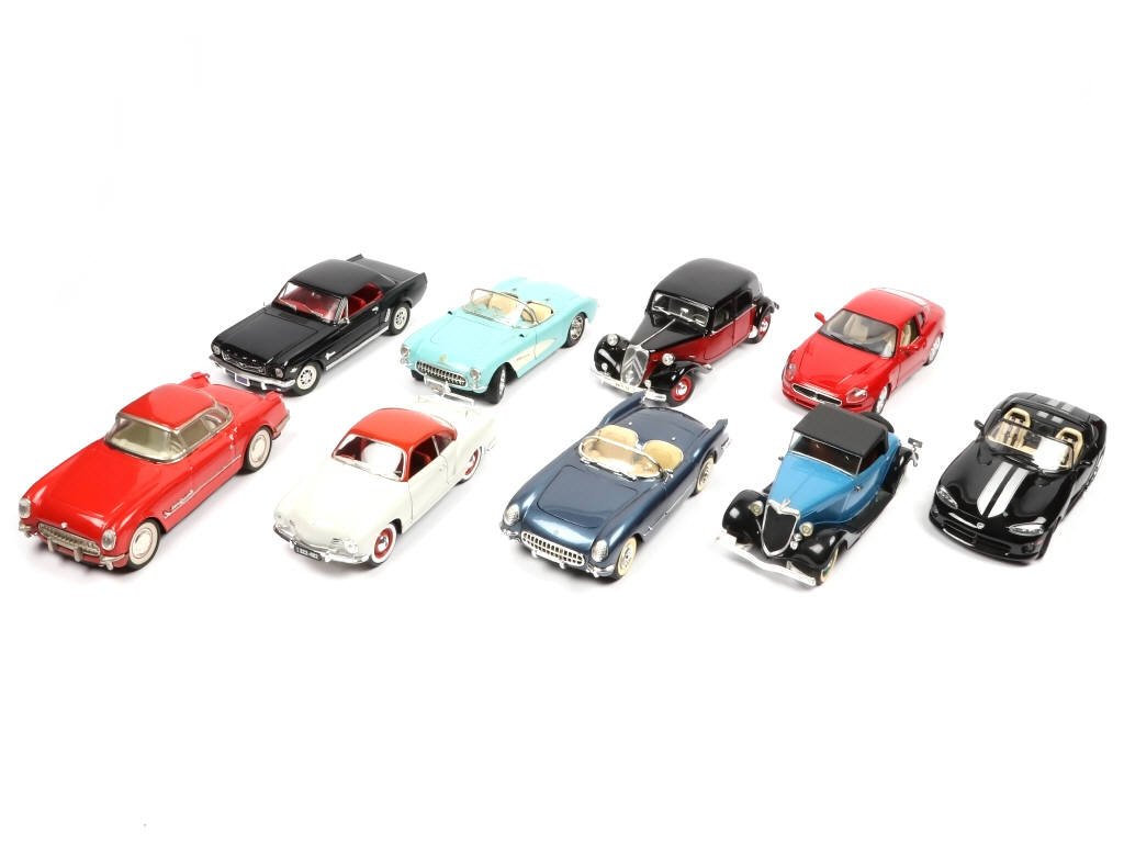 échelle 1/18ème - comprend notamment les marques : SOLIDO, MIRA, MAISTO & BBURAGO - possibilité de petits manques & parties cassées