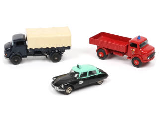 comprend : CITROEN ds 19 'TAXI' du Portugal, MERCEDES camion bâché & pompiers 'BSB PORTO' (quelques micro-projections de peinture par endroits, sans bâche)