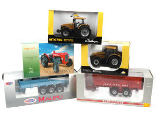comprend notamment les modèles : MASSEY FERCUSON MF 35X, semi-remorque agricole 23 tonnes TRIDEM & CHALLENGER MT675C - petites déchirures sur quelques boîtes