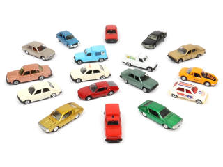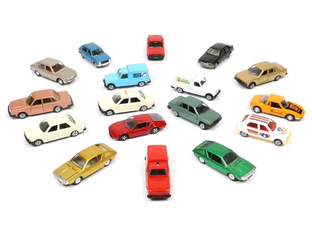 série JET-CAR (principalement) - comprend notamment les modèles : RENAULT, PEUGEOT, MATRA, CITROEN & ALPINE - une petite fêlure sur un pare-brise & partie opacifiée sur un autre - petits détails ajoutés sur quelques exemplaires