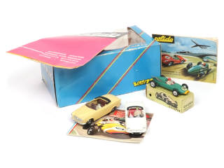 miniatures reproduisant les modèles : PEUGEOT, RENAULT & COOPER - on y retrouve les marques : SOLIDO (un exemplaire en boîte état 'b') & VEREM (2 exemplaires en boîte état 'c', modèles à refixer) - on y joint 3 catalogues de la marques SOLIDO (état 'b', petites annotations sur un exemplaire)