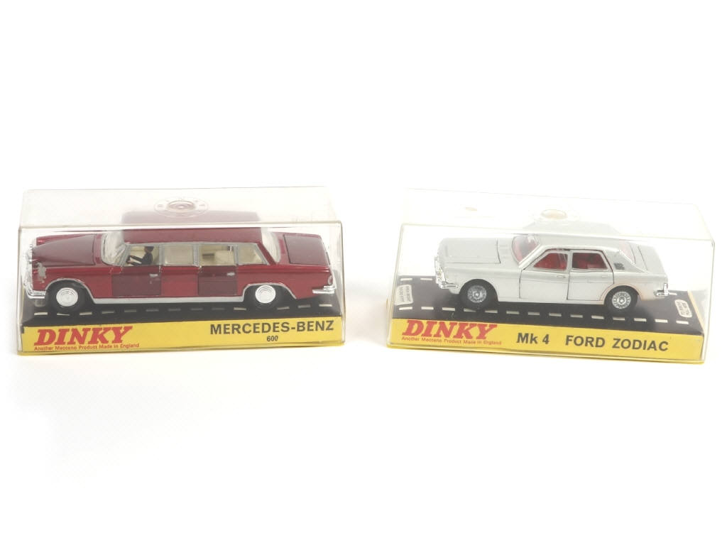 comprend les modèles : MERCEDES-BENZ 600 (détails de peintire ajoutés, manque attaches de boîte) & FORD ZODIAC - boîtes légèrement encrassées