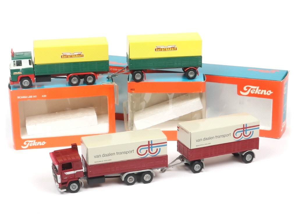 modèles légèrement encrassés - comprend : SCANIA LBS 141 'AUTOTRANSIT' & VOLVO F1225 'VAN DAALEN TRANSPORT' - 2 boites avec ruban adhésif (sans déchirures apparentes)