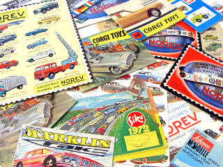 on y retrouve les marques : NOREV, CORGI TOYS, SIKU, MÄRKLIN, GUISVAL, MINIATURES RENAULT & SCHUCO - on y joint 9 sachets illustrés en papier, 4 buvards illustrés & 2 affichettes de marque NOREV