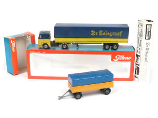 comprend : bâché 'DE TELEGRAAF' (encrassé - avec facsimilé d'un journal) & remorque 4 roues (petit défaut dans la peinture de la bâche - boites en états 'b' & 'c')