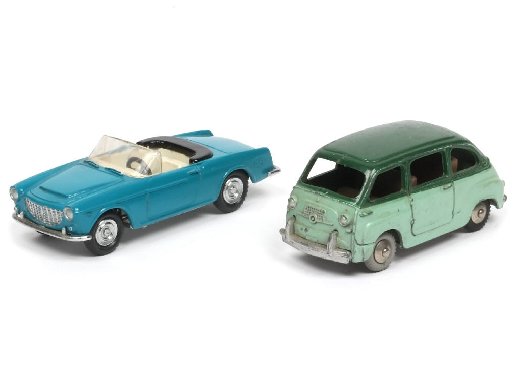 éclats principalement sur l'aménagement intérieur - on y joint un FIAT MULTIPLA 600 de la marque en état 'C' (frottements plus ou moins importants, 2 pneus non conformes, un petit détail de peinture ajoutée sur le haut de la plaque minéralogique arrière, aménagement intérieur désolidarisé)