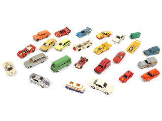 comprend notamment les marques : NOREV, SOLIDO, LUSO-TOYS, NACORAL & JOAL - quelques carrosseries encrassées & traces d'humidité - petits manques & parties cassées