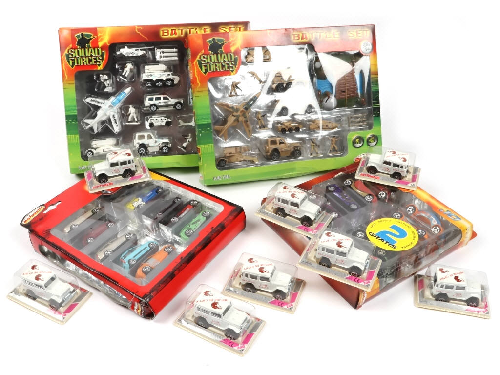 comprend : 2 coffrets "BATTLE SET", un Fiction, coffret 10 voitures & 8 voitures série 200 "REFUGE DE CATHY"