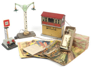 non testés - comprend notamment : lampadaires (dont 2 exemplaires en boite état 'b'), poste d'aiguillage & butoir - on y joint 2 catalogues de la marque & 2 autres de la marque HORNBY - avec manques, parties cassées, oxydées & non d'origine