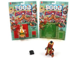 année 1989 - comprend : LIEUTENANT LEGG réf : 1891-0710 (scellé) & TACO TERROR réf : 1893-0710 (blister jauni - jamais joué, avec blister découpé proprement au cutter sur une grande partie, afin de le sortir pour le regarder - carte intacte) - jouets dans un état proche du neuf - cartes avec micro accrocs & légèrement déformées - jouets de première main achetés à l'époque par le vendeur