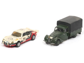 créations artisanales en bois de 1978 - comprend : PEUGEOT 202 U plateau bâché 1948 & C.G SIMCA Critérium Cèvennes 1970/71