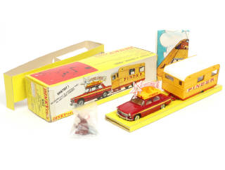 DINKY TOYS (FRANCE) 882 PEUGEOT 404 & Caravane 'PINDER' jaune, rouge & blanc