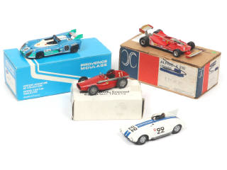 comprend les modèles : FERRARI 312 T5, 553 1954, MATRA 670 Le Mans 1972 & CUNNINGHAM C6R - on y retrouve les marques : A.M.R. X, PROVENCE MOULAGE (2 exemplaires) & GRAND PRIX MODELS - un élément à recoller sur 2 exemplaires - 2 boites non conformes en états 'b' & 'c' & un modèle sans