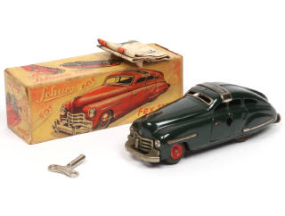 production originale - longueur 14,5 cm - avec moteur à clef (fonctionne), clef, notice & direction - boîte jaunie - pneus séchés - parties chromées très légèrement ternies