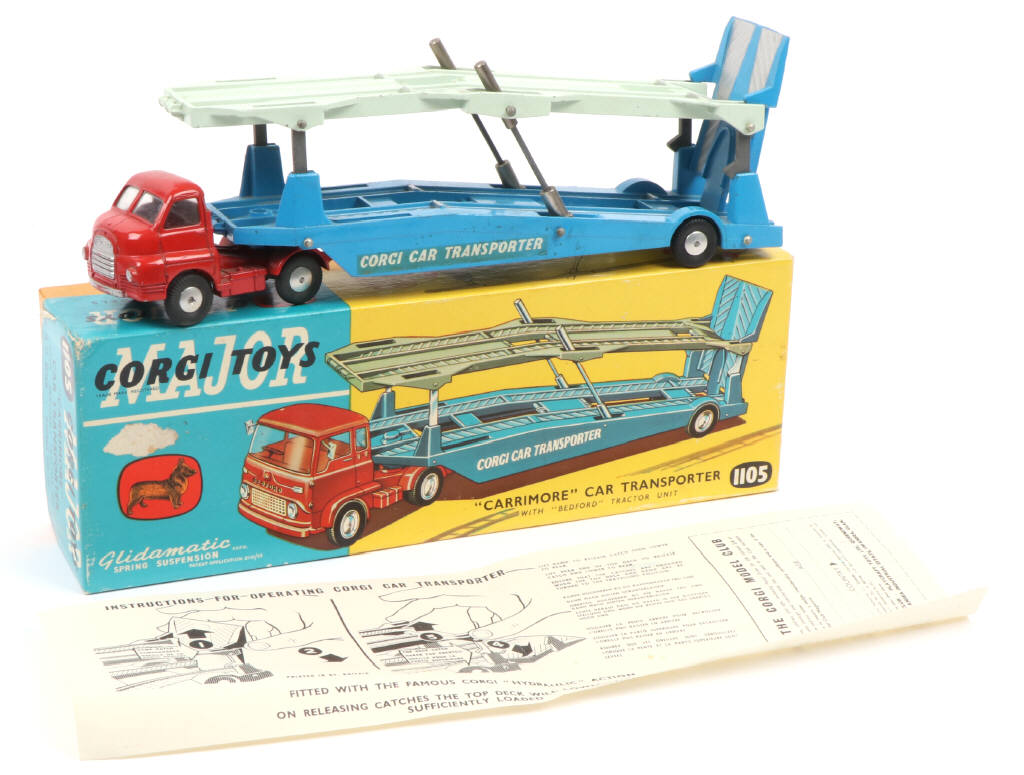 CORGI TOYS (GB) 1105 BEDFORD TK Semi-remorque porte-autos rouge, bleu & vert d'eau