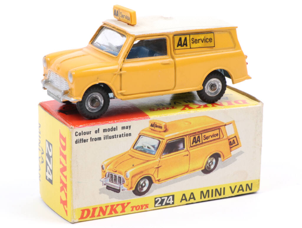 DINKY TOYS (GB) 274 AUSTIN MINI Van 'AA SERVICE' jaune, toit blanc