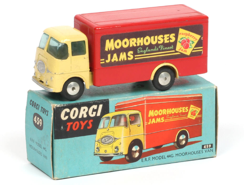 CORGI TOYS (GB) 459 ERF 44G Fourgon 'MOORHOUSES LEMON CHEESE' jaune pâle & framboise