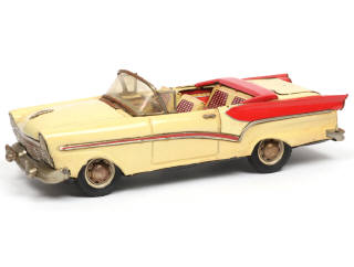 longueur : 29,5 cm - avec moteur à friction (fonctionne), dossiers des sièges avant rabattables & coffre de malle arrière ouvrant - traces d'oxydation plus ou moins importantes sur les parties chromées (certaines majeures) - carrosserie légèrement encrassée