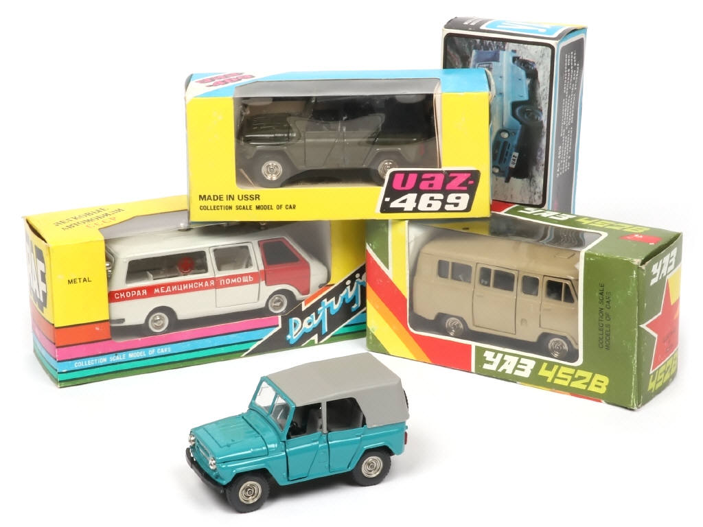 comprend les modèles : UAZ 452B, 469 & RAF ambulance - quelques accrocs & petites déchirures sur les boîtes
