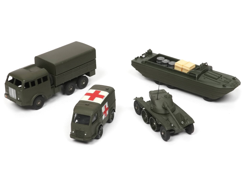 DINKY TOYS (FRANCE) Ensemble de 4 véhicules militaires kaki
