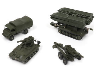comprend : AMX poseur de pont, canon de 155 automoteur, MERCEDES UNIMOG (retour avant de plancher retouché) & canon de 155 mm (version jantes concaves)